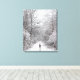Schneebedeckte Bäume im Wald mit Wanderweg.