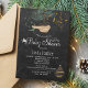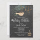 Rustikale, elegante Baby-Dusche Stilvorlage auf dunkelgrauem Kalkbrett mit einem Kiefernhain mit einem Holzvogel, einem trockenen Zweig Weihnachtsbaum mit Stern- und Aquarellsteinen, weißen Blume und kleinen Herzen. Sie können wählen, um es anzupassen weitere sich ändernde Schriftartes und Farben der Schrift. — Die Einladung eignet sich für elegante Winterrustikale Babydusche oder Party. — Wenn Sie Hilfe benötigen, um es anzupassen, kontaktieren Sie mich bitte!