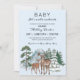 Aquareller Winterwald Waldhirsche und Berge auf blass blauem Hintergrund