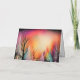 Ein lebhafter Sonnenuntergang malt den Himmel in Orange, Rosa und lila, während schneebedeckte Bäume und ein malerisches kleines Haus den Charme der Szene noch verstärken. Der ruhige Ausdruck des Kindes und das zauberhafte Ambiente der Winternacht schaffen ein Gefühl des Friedens und des Wunders.