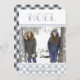 Unsere Winterurlaub-Fotokarte bietet rustikalen Stil in silbergrauen, knusprigen Weißtönen und rauchiger Marineblau mit einem Hauch von Holzkohle. Das Design zeichnet sich durch "WEIHNACHTEN" oben in dekorativer Schrift mit einem unteren Rand des Büffels kariert in eisblau grau und weiß aus. Personalisieren Sie mit Ihrem Familiennamen im Jahr unten auf einem Band-Banner.