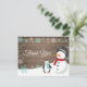 Winter Weihnachten Urlaub Schneeflocken Danke Karte. Schneemann und Pinguin. Rustikaler Holzboden. Land Vintag Retro Barn. Aqua Snowflake. Liebe und Dank, schöne Skript-Schriftart. Fügen Sie Ihre Nachricht auf der Rückseite oder verlass leer und schreiben Sie Hand. Für weitere Anpassungen klicken Sie bitte auf die Schaltfläche "Anpassen" und verwenden Sie unser Designwerkzeug, um diese Vorlage zu ändern.