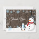 Winter Weihnachten Urlaub Schneeflocken Danke Karte. Schneemann und Pinguin. Rustikaler Holzboden. Land Vintag Retro Barn. Blauer Schneeflocken. Liebe und Dank, schöne Skript-Schriftart. Fügen Sie Ihre Nachricht auf der Rückseite oder verlass leer und schreiben Sie Hand. Für weitere Anpassungen klicken Sie bitte auf die Schaltfläche "Anpassen" und verwenden Sie unser Designwerkzeug, um diese Vorlage zu ändern.