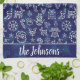 Diese hübschen Handtücher enthalten Ihren personalisierten Familiennamen und ein wunderschönes, originelles Winterbild in Blau und Weiß. Das Sternenmuster hat viele Urlaubssymbole, vom Weihnachtsmann über Schneeflocken, Bäume, Hirsche, Glocken, Schneemänner, Ziergegenstände und vieles mehr. Verwenden Sie die leicht zu personalisierende Vorlage.