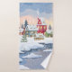 Winterweihnachtslandschaft mit schneebedecktem Hau Badehandtuch
