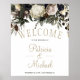 Winterweiße Elfenbein-Blume mit saisonalem Pinekon, Ästen und Blättern machen aus einem hochklassigen Hochzeitswillkommenposter mit einem modernen, handgeschriebenen und modernen Goldtypografie-Drehbuch ein elegantes und elegantes. ++++++++++++ Einfach mit Ihren Daten personalisieren! +++++++++++++ Für verwandte Hochzeitsartikel lesen Sie bitte die gesamte Sammlung unter dem Hauptbild.