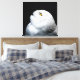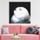 Portrait Foto eines schönen weißen Schneeauuls mit gelben Augen auf schwarzem Hintergrund.