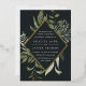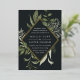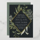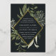 Elegante und stimmungsvolle Hochzeitseinladungen für Herbst-, Winter- oder Sommerhochzeiten im Abend mit Aquarellgrün und botanischem Blattwerk in gedämpften Schattierungen von Salbei, Farn und Oliven in einem geometrischen Rahmen, der Ihre Hochzeitsdetails umgibt. Die Goldfolienbespannung rundet das Aussehen nach einer luxuriösen Touch ab.