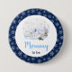 Dieser niedliche und wunderliche Wasserfarben-Baby-Shower-Button zeigt eine Wasserfarben-Winter-Wunderland-Szene mit bezaubernden arktischen Tieren wie einem Eisbären, Pinguin, einer Katze, einem Wal, einer Robbe und einem Elch. Im Hintergrund sind schneebedeckte Berge, Eiskappen und Bäume. Der Text kombiniert handgeschriebene Schrift und serifenlose Schriftarten für ein stilvolles und modernes Aussehen. Fallende Schneeflocken und schöne blaue Blumenarrangements vermitteln ein Wintergefühl. Dies ist perfekt für Winter- und Weihnachts-Baby-Shower.