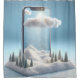 Ein schlankes Smartphone steht aufrecht, sein Bildschirm-Schauspiel als Tor zu einem Miniatur-Winterwunderland. Über dem Wasser schwingt eine flauschige Wolke, die die Szene mit einem sanften Schneefall überschüttet. Im Display des Telefons erheben sich schneebedeckte Hügel, umgeben von einem Mini-Wald aus immergrünen Bäumen. Die ganze Szene Erholungen auf einem Bett von unberührtem weißen Schnee, die ein Gefühl von Magie und Ruhe.