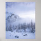 Winterwunderland, Nebel, Fichtenwald und Berge Poster