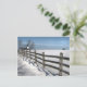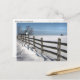 Diese Postkarte kreiert ein klassisches ländliches Gefühl...ein eingezäunter Feld und die Landkirche direkt über dem Hügel. Der Himmel ist blau gegen den reinen weißen Schnee.