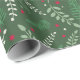 Feiern Sie die Ferien, indem Sie Geschenke in einem festlichen Urlaubspapier verpacken. Das Winterzweigungspapier hat einen grünen Hintergrund mit hellgrünen Kiefernästen, Schnörkeln, Blätter und roten Beeren.
