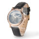 Uhr, Klassische Damenuhr mit schwarzen Lederarmband