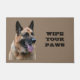 Dieser Türmchen hat ein Foto eines gut aussehenden deutschen Schäferhundes neben den Worten WIPE YOUR PAWS. Erinnern Sie sie mit Spaß, um sich die Füße zu wischen, wenn sie eintreten! Sie können die Wörter ändern, wenn Sie möchten.