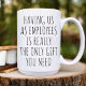 Diese Kaffee-Tasse hat ein lustiges Textdesign, bei dem wir als Mitarbeiter wirklich das einzige Geschenk sind, das Sie brauchen. Bester lustiger Schlamm für Office Party.