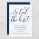 Schöne moderne einfache Navy Blue Kalligraphie, Hochzeitsfeier Ankündigung, Einladungskarte (Wir binden den Knoten). Dies ist ideal für Ihren Hochzeitsempfang und Ihr Party nach der Hochzeit. Fügen Sie Ihre Daten in passender Schriftart / Schrift hinzu. #TeeshaDerrick