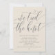 Schöne moderne Script Kalligraphie, in dunkelgrau und creme, Hochzeitsankündigung, Einladungskarte (Wir binden den Knoten). Dies ist ideal für Ihren Hochzeitsempfang und Ihr Party nach der Hochzeit. #TeeshaDerrick