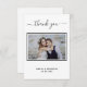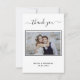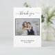 Eine elegante und moderne Dankeschön-Karte, personalisiert mit Ihrem eigenen Foto. Fügen Sie Ihr Foto, das Hochzeitsdatum, Ihre Namen und den Dankeschön Notiz. Eine trendige Schwarzweiß-Karte. Der Text: Vielen Dank auf der Vorderseite und Ihre Namen auf der Rückseite sind mit einem stilvollen handgeschriebenen Skript geschrieben.
