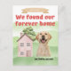 Wir bewegten - Unsere Forever Zuhause gefunden, Dog Approved Announcement Postcard Teilen Sie die Freude Ihrer neuen Zuhause mit dieser charmanten "We Moved" Ankündigung Postcard! Diese Postkarte mit einem bezaubernden Hundemotiv ist ideal, um Freunde und Familie lassen, die sich über Ihren großen Umzug informieren. Die Vorderseite zeigt eine niedliche Abbildung eines Hundes, der das neue Haus mit einem Banner "Found Our Forever Zuhause" feiert und betont, dass Ihr neuer Platz als Haustier zugelassen ist. Der Rücken bietet ausreichend Platz, um Ihre neue Adresse und eine persönliche Nachricht zu schreiben. Diese Postkarte aus hochwertigem Cardstock mit lebhaften Farben ist eine angenehme und lustige Möglichkeit, Ihre spannenden Neuigkeiten bei Familie und Freunden bekannt zu geben! Du kannst dem Hund das Foto hinzufügen.