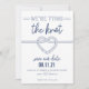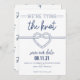 Dieses Wasserthema Save the Date zeigt einen handgemachten, herzenförmigen Knoten und ein Ankermuster, das den lassend Menschen beim Anbinden des Knotens vermitteln soll.