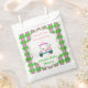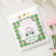Diese personalisierte Dankestasche eignet sich ideal für Golfliebhaber. Der skurrile Golfwagen ist spielerisch mit rosafarbenem Glitzer, Mammutschuhen, winzigen Hintern, Flaschen und Schnullern dekoriert und verleiht Ihrer Babydusche eine lustige und charmante Touch.