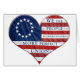 Farbenfrohe Rot, Weiß und Blau Original 13 Staat Betsy Ross Amerikanisch Fahne in Form eines Herzens, mit der ersten Zeile aus der Präambel der USA-Verfassung.