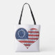 Farbenfrohe Rot, Weiß und Blau Original 13 Staat Betsy Ross Amerikanisch Fahne in Form eines Herzens, mit der ersten Zeile aus der Präambel der USA-Verfassung.