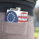 Farbenfrohe Rot, Weiß und Blau Original 13 Staat Betsy Ross Amerikanisch Fahne in Form eines Herzens, mit der ersten Zeile aus der Präambel der USA-Verfassung.