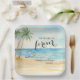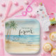 Ein elegantes Hochzeitsdesign mit Aquarellstrand und Palmen, das Sie mit Ihren Details anpassen können.
