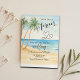 Eine elegante Wedding Save the Date Card mit Aquarellstrand und Palmen, die Sie mit Ihren Details anpassen können.