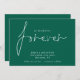 Wir entschieden uns für Forever Emerald Green Save the Date. Verfügbar in digitaler Form und gedruckt. Elegantes Typografie-Design, um Ihre Gäste einzuladen, um Ihr Datum retten. Wir entschieden uns für Forever, welches in einem stilvollen Set-Skript ist in der Mitte. Die Erholung des Textes können Sie leicht personalisieren. Text- und Hintergrundfarben können geändert werden, wenn Sie Ihr Hochzeitstil besser Anzug über die weitere Option anpassen möchten.