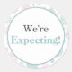 Feiern Sie Ihre bevorstehende Ankunft mit diesem Es ist eine Überraschung! Klassischer Rundaufkleber. Dieses Design enthält den Text "We're Expects!" in sanfter Schrift mit einem einfachen pastellfarbenen Muster von grün und rosa.