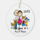 Ein Strichmännchen-Erwartungspaar mit zwei kleinen Jungen und einem großen Hund, hat einen Bereich, den Sie Ihren Familiennamen hinzufügen können und das Datum kann von 2024 auf jedes Jahr geändert werden.