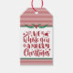Ein rot-weißes Weihnachtsgeschenk-Tag, das sagt "Wir flüstern dir ein frohes Weihnachtsfest" Du kannst deinen Namen und deine Nachricht auf der Rückseite des Tags personalisieren. Fügen Sie eine Schachtel mit Broschüren, eine Tasse und heiße Schokolade-Packungen oder ein Glas Cookie-Mix für eine Geschenkidee hinzu.