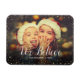 Maßgeschneiderte Foto Magnete mit einer einfachen Vorlage zur Anpassung. Dieses schicke, moderne Design hat ein Imitat Glitzer Konfetti-Rand und stilvolle Kalligraphie-Text. In der Formulierung steht "Wir glauben". Personalisieren Sie es mit Ihren Fotos und fügen Sie Ihren Familiennamen und das Jahr hinzu. Verwenden Sie die Designwerkzeuge, um den Text zu bearbeiten, mehr Fotos hinzuzufügen und ein einzigartiges Weihnachts-Foto-Magnet-Design zu schaffen.