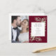 Diese schicke botanische Hochzeitsankündigung und Einladungskarte mit zarten Aquarellfarben auf bordeauxrotem Hintergrund können mit Ihren besonderen Fotos und Festlichkeiten personalisiert werden. Entwickelt von Thisisnotme©