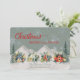 Weihnachts-Grüße aus unserer neuen Zuhause-Flachkarte hat schöne Aquarellhäuser mit schneefarbenen Berghängen, Bäumen und einem schneebedeckten Himmel. Fügen Sie Ihre Namen zur Vorderseite und neue Adresse auf der Rückseite.