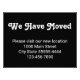 Dieser sich bewegende Ankündigungsdruck hat einen weißen Text, den Sie anpassen können. Dieses schwarze Banner sagt, dass wir uns bewegt haben Bitte besuchen Sie unsere neue Position. Zusätzliche Textzeilen stehen für Ihre neue Adresse und Telefonnummer zur Verfügung.