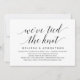 Schönes elegantes schwarzes Script, Hochzeitsankündigung, Einladungskarte (Wir haben den Knoten gebunden). Dies ist ideal für Ihren Hochzeitsempfang und Ihr Party nach der Hochzeit. Fügen Sie Ihre Daten in passender Schriftart / Schrift hinzu.