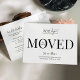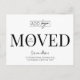 Lass deinen Kunden, Mitarbeitern und Zustellern mit diesem Minimalisten "We have Moved Business Logo Postcard Design" über deine neue Büroadresse. Dieses moderne Postcard-Design mit modernem Schriftart, Platz für Ihr Firmenlogo, neue Adresse, Kontaktdetails und Öffnungszeiten ist eine einfache Möglichkeit, Kunden und Lieferanten über Ihre Adressänderung zu informieren.