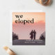 Wir haben die Ankündigung der Verleihung des Fotos veröffentlicht. Ihr Lieblings-Foto füllt den gesamten Bereich auf der Vorderseite, mit Typografie Wir Eloped oben und Ihre Namen, Datum und Ort Ihrer Zeremonie am unteren Ende. Laden Sie einfach Ihr eigenes Foto hoch und personalisieren Sie den Text einfach und fügen Sie Ihre eigene Nachricht auch auf der Rückseite ein! Sie können auch Textfarben und -stile so ändern, dass sie auf Ihrem eigenen Bild korrekt angezeigt werden, indem Sie die Option Weitere anpassen wählen.