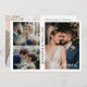 Mit dieser modernen Karte können Sie Ihre Hochzeitsfeier bei Freunden und Familie ankündigen. Das Design hat 3 Foto Collage vorne mit weißer Kalligraphie "wir haben" Text und die Namen der neuen Weds. Auf der Rückseite haben Sie ein vertikales Foto auf der Seite und auf der anderen Seite den Text der Ehe. Personalisieren Sie die Karte mit Ihren Fotos, Ehedetails, Ehedatum und Namen.