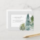 Dieses Design zeichnet sich durch Aquarellkiefernbäume und benutzerdefinierte Skriptkalligraphie auf einem einfachen Hintergrund aus.