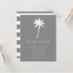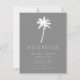 Tropische Ankündigung mit einem Set aus Palmen auf einem angesagten grauen Hintergrund mit einem frischen und modernen Streifen.