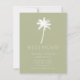 Tropische Ankündigung mit einem Set aus Palmen auf grünem Hintergrund mit einem frischen und modernen Streifen im Hintergrund.