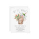 Rustikale, sich bewegende Ankündigungskarte mit einem Country-Tontopf mit hübschen Frühlingsblumen.