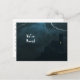 Zeigt eine Silhouette eines Schlosses in einer dunklen stürmischen Nacht mit Blitz, Fledermäusen, einem beleuchteten Fenster und "Wir haben uns bewegt." Personalisieren und personalisieren Sie den Text für Ihre neue Adresse und Kontaktinformationen. Eine lustige, spukhafte, gotische, beängstigende, lustige und humorvolle Art, Ihren Umzug / Adressenwechsel anzukündigen. Für September, Oktober, Halloween, November, Herbst oder zu jeder Jahreszeit.