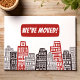 Cartoon-Stil-Muster mit rot-schwarz Retro-Gebäude für eine sehr exklusive neue Adressenankündigung. Karo mit der passenden Kollektion für KOORDINIERENDE Objekte. Original Kunstwerke von PUPSIKU STUDIO. 100% exklusiv.