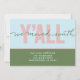 Diese bewegende Ankündigungskarte verströmt Südcharm mit ihrer spielerischen und kühnen Verkündigung "Y'ALL we move South". Die großen, rosa Buchstaben, mit einer subtilen, rustikalen Textur gepaart, sind vorne und Mitte, das Auge einnimmt und die Wärme und Gastfreundschaft des Südens hervorruft. Unten, eine ruhige Band von olivgrünem Grund das Design, die einen ruhigen und erdigen Kontrast zu der Nachricht oben. Das Design der Karte gleicht Lichtspieligkeit und Eleganz perfekt aus und macht sie zu einer angenehmen Möglichkeit, die Neuigkeiten eines Umzugs mit Freunden und Familie zu teilen.
